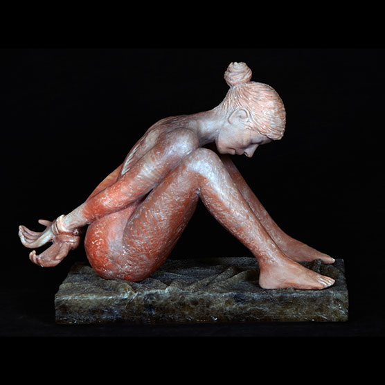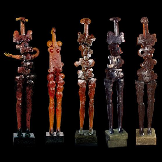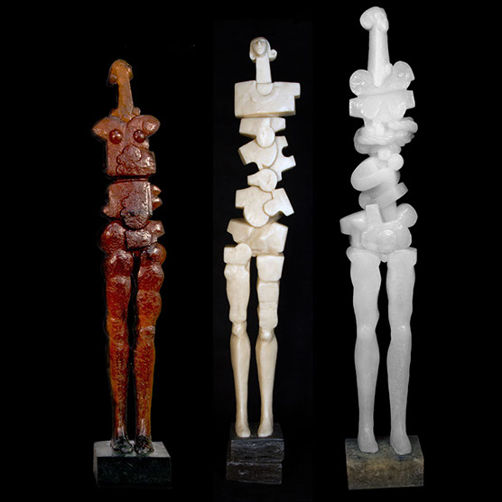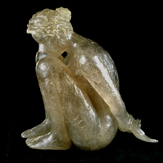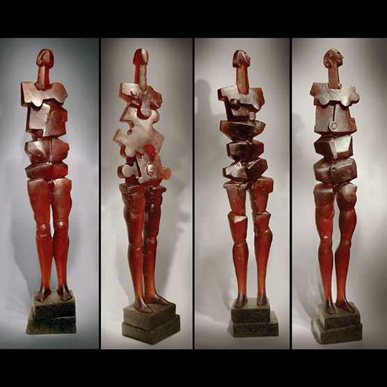 1) “Standing woman with Heart” 2006 , 06 , 39” x 6” x 5.5” , Kiln cast glass.