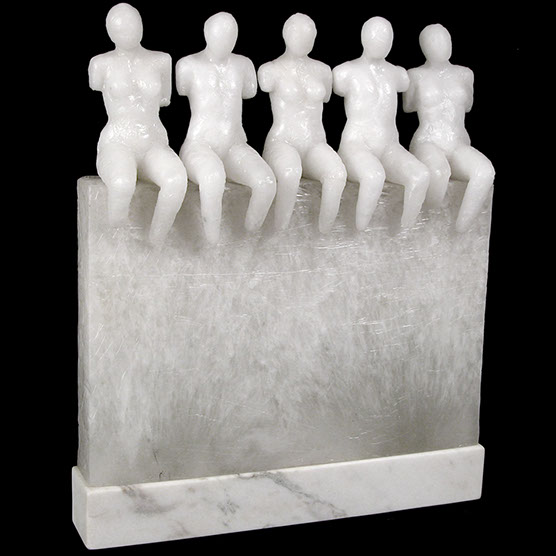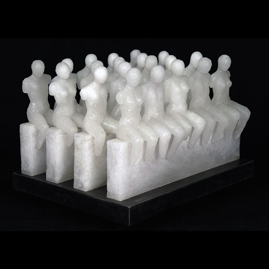 Untitled / Five waiting figures , 05 , 26” x 20.5” x 5” , Cast glass, marble
