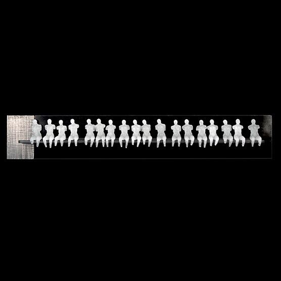 Untitled (waiting figures 18 Wht) , 09 , 16 x 97.5 x 5.5 , Kiln Cast glass, welded steel