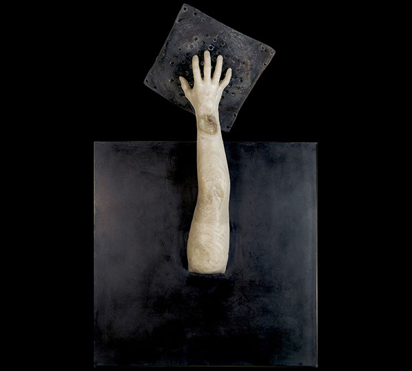 "Holding" ll , 09 , 39 x 26 x 7 , Cast glass, welded steel
