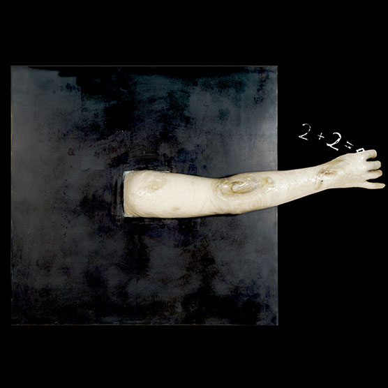 "2+2=5 " , 09 , 26 x 36 x 4.5 , Kiln Cast glass, welded steel