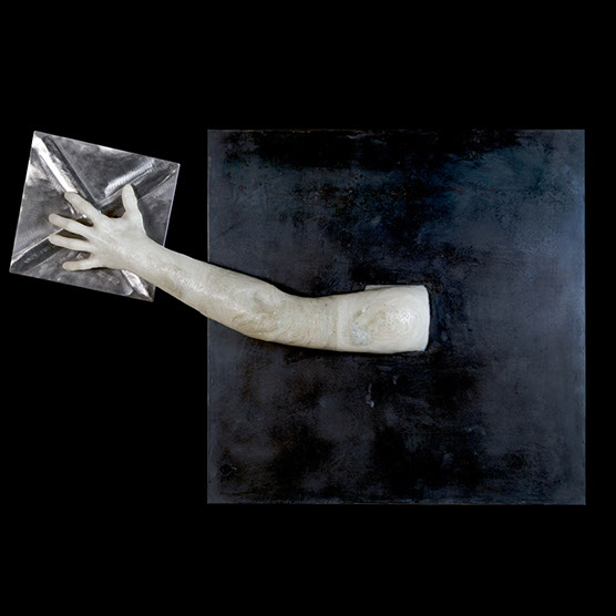 "Holding" l , 09 , 26 x 41 x 4.5 , Kiln Cast glass, welded steel