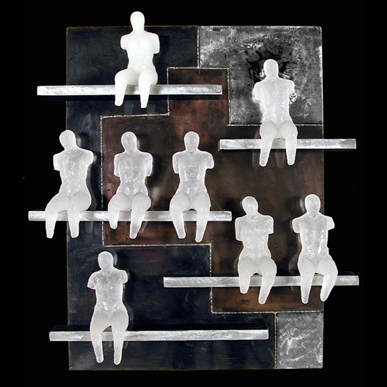 Untitled (waiting figures 8CL/SQ) , 04 , 27” x 38” , Cast glass, steel.