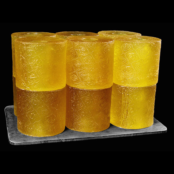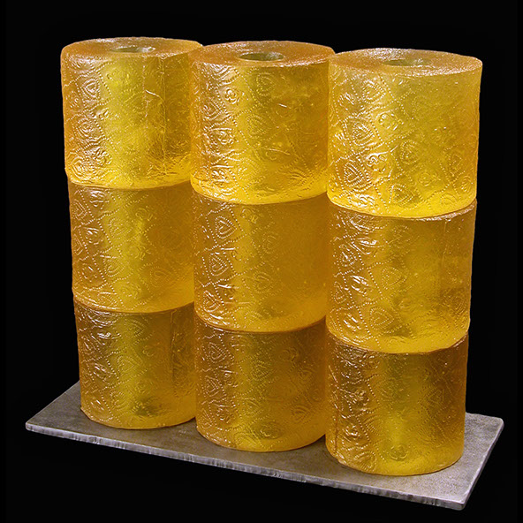 "Yellow Nine Pack" , 2005 , 16.5 x 14 x 6.5 , Cast glass , Nickel/Aluminum flame sprayed steel