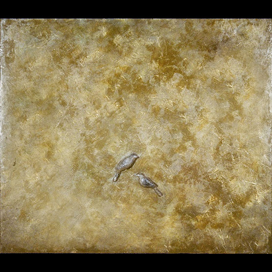 “Bird In Gold” , 88 , 20" x 20". , Kiln cast glass , wood , enamel paint on wood.