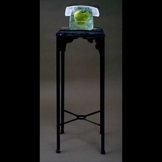 "Telephone With Apple" , 88 , 40” x 8,5” x 9” , Cast glass, steel.