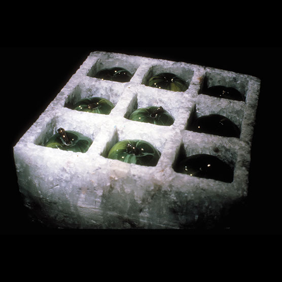 Untitled with four apples , 89 , 13” x 10” x 17" , Blown,Cast,painted glass