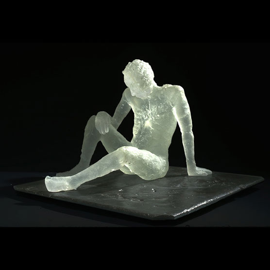 “I Sat On The Ground” , 90 , 12” x 12” x 14" , Kiln cast glass.