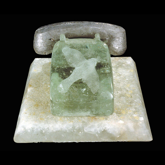 “Telephone With Flying Bird” , 88 , 25” X 25” X 19” cm. , Kiln cast glass, steel.