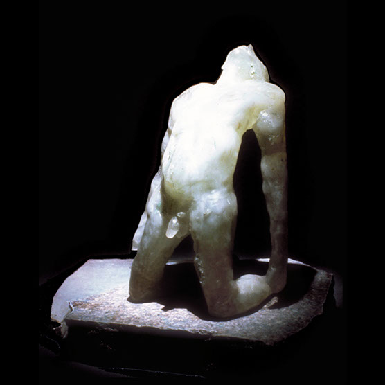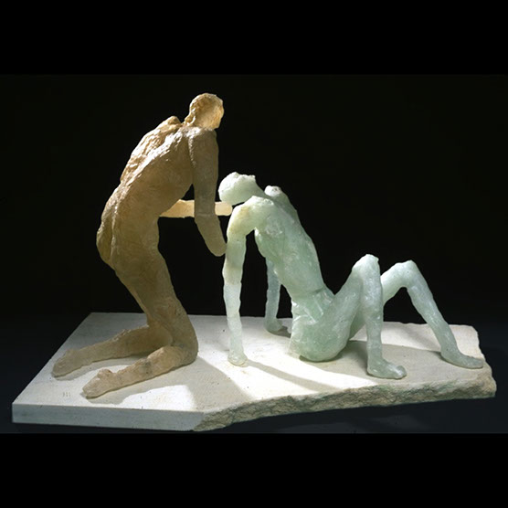 “Male Reaching” , 89 , 14” x 15” x 14" , Kiln cast glass , Marble.