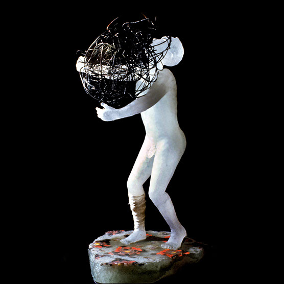 “What Do You Do With A Rabbit?” , 92 , 23” x 14 1/2” x 7 , Cast, polished glass, oil paint, Lead