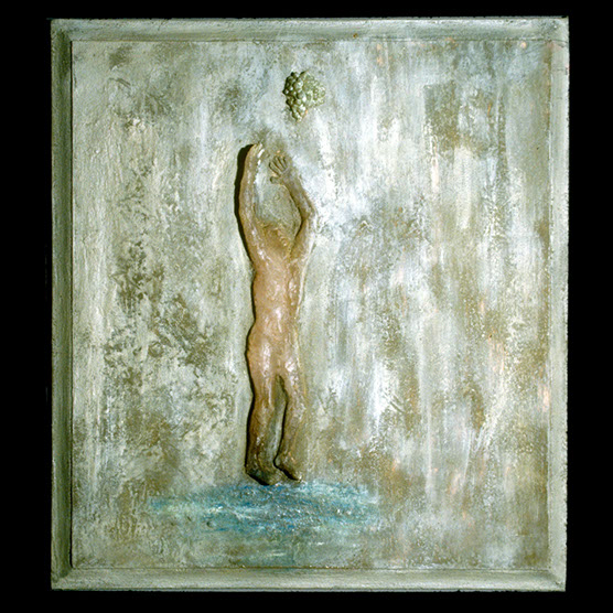 “I Thirst” , 90 , 28” x 26” , Kiln cast glass, wood, paint on wood