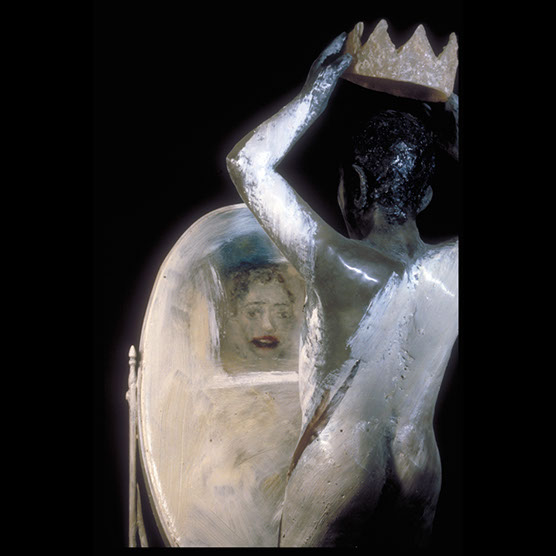 My Image (Detail) , 90 , 35” x 22” x 27” , Kiln cast glass, steel, oil paint