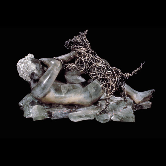 Untitled. (Rider) , 90 , 16” x 10” x 20 , Kiln cast glass , steel , wire, concrete