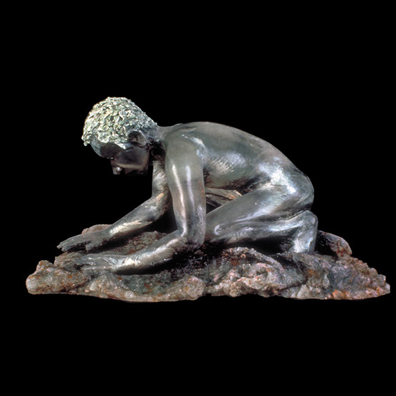 “Searching Young Man” , 89 , 13” x 20” x 14" , Kiln cast glass , Marble.