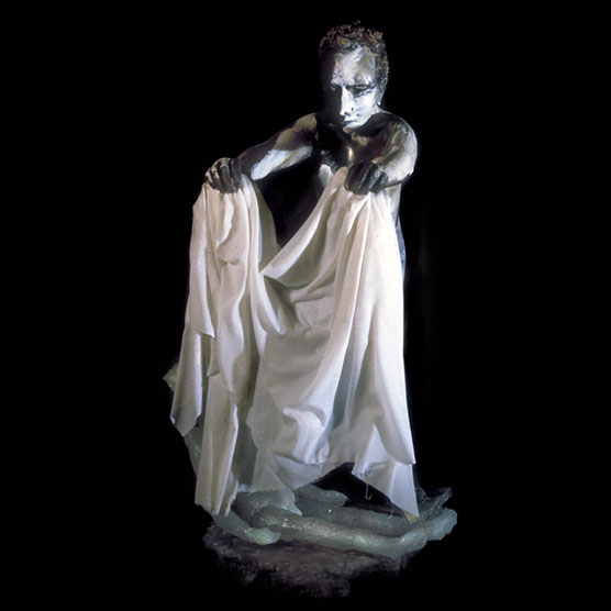 “Magician” , 91 , 32” x 21” x 13.5” , Kiln cast glass, resin coated fabric, oil paint