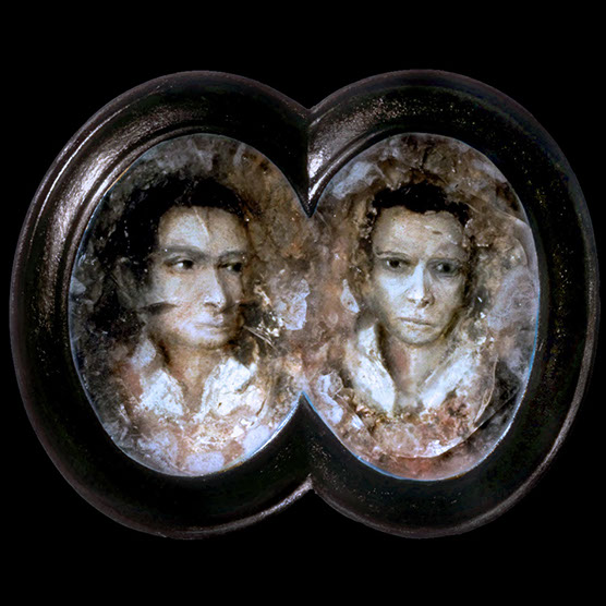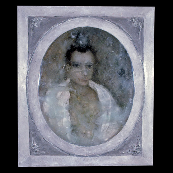 (Father And Son) “Double Portrait” , 92 , 25” x 20” , Kiln cast glass, wood, oil paint, enamel paint