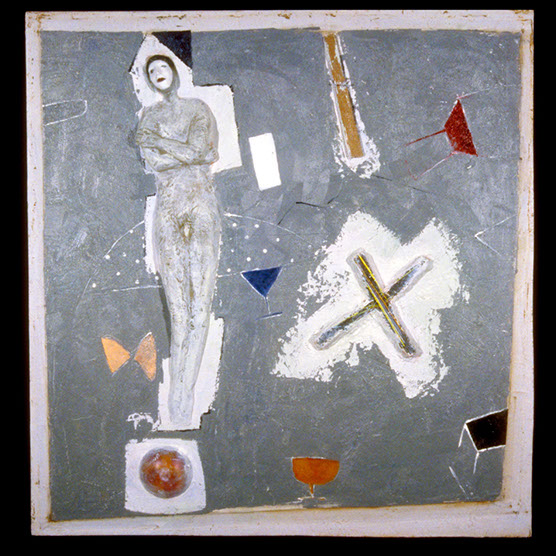 (Seven Conversations With Madelene) - “Two” (2 of 7) , 88 , 33" x 25" , cast glass , paint on wood.