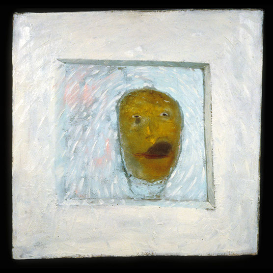 “The Guy” , 87 , 24” x 24” , Kiln cast glass, oil paint on wood