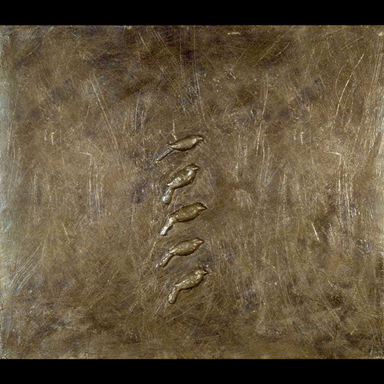 “Bird In Gold” , 88 , 20" x 20". , Kiln cast glass , wood , enamel paint on wood.