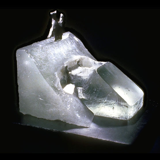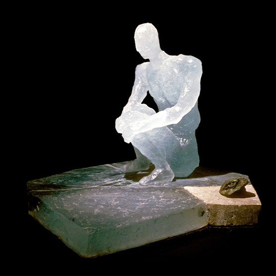 “Still Waiting” , 89 , 13” x 17,5” x 17,5” , Kiln cast glass, Cast iron base