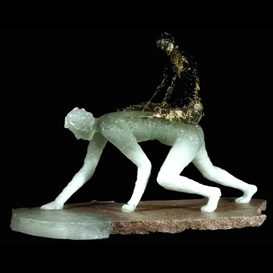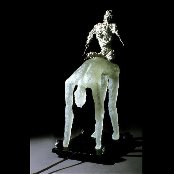 Untitled. (Rider) , 90 , 16” x 10” x 20 , Kiln cast glass , steel , wire, concrete