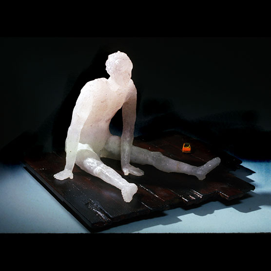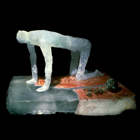 “I Fell” , 89 , 14” x 22” x 22" , Cast glass, wood, found object