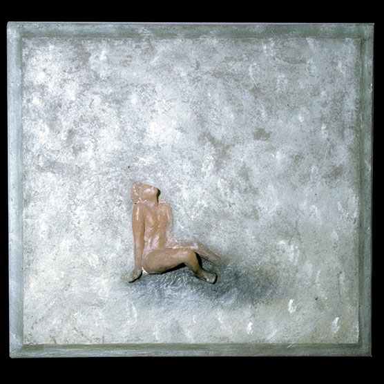 “Waiting” , 87 , 23.5” x 22.5” , Kiln cast glass, oil paint on wood