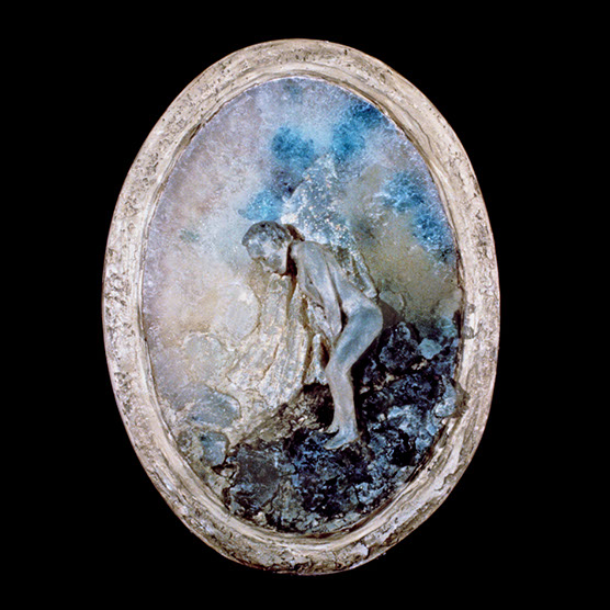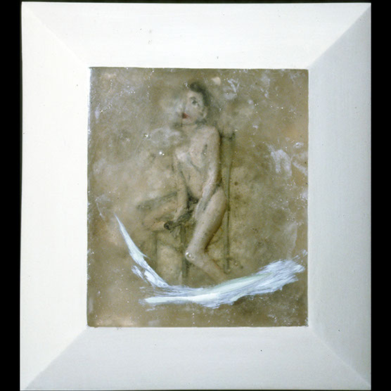 "His Battle" , 89 , 12” x 14": , Kiln cast glass , wood , oil paint