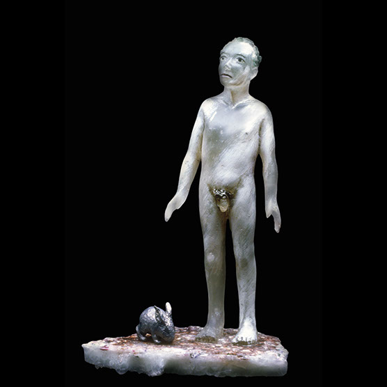 “What Do You Do With A Rabbit?” , 92 , 23” x 14 1/2” x 7 , Cast, polished glass, oil paint, Lead