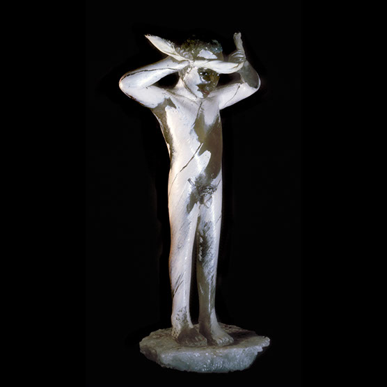 “Searching Young Man” , 89 , 13” x 20” x 14" , Kiln cast glass , Marble.