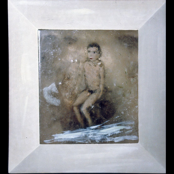 “The Blue Boy” , 87 , 24” x 21” , Kiln cast glass, oil paint on wood