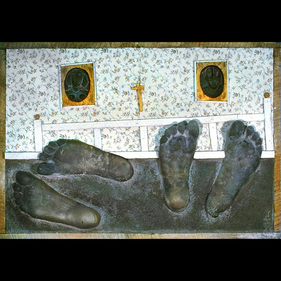 "The Johnsons" , 87 , 21" x 29" , Cast glass, mixed media.